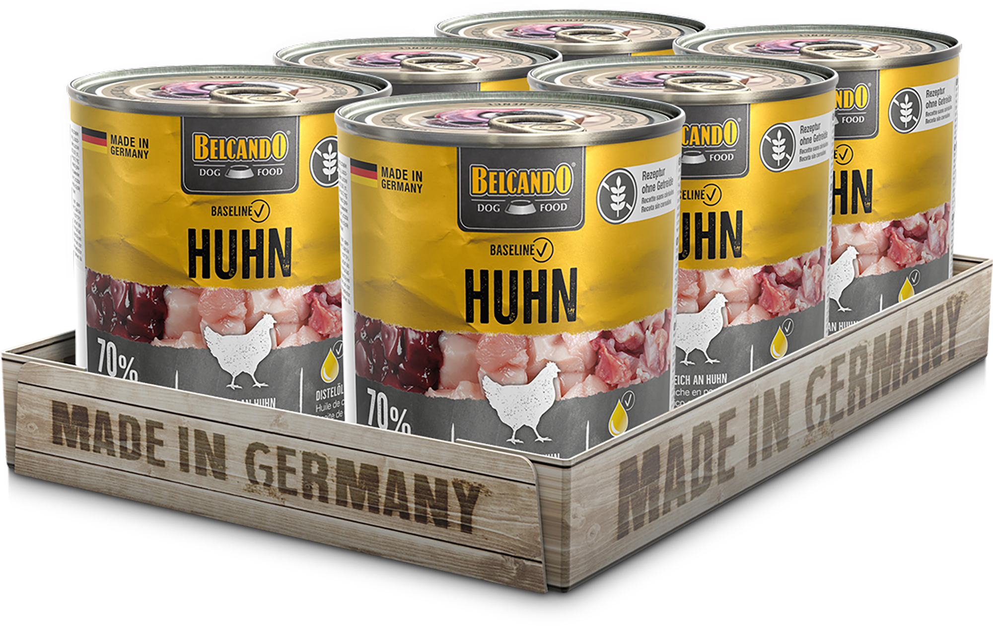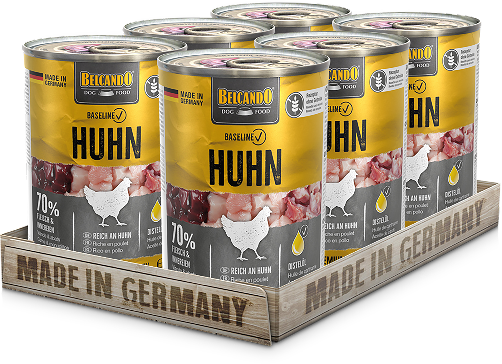Zusammensetzung: Hühnerfleisch, -herz, -muskelmagen (26 %); Fleischbrühe (28,8 %); Fleisch; Leber; Magen; Herz; Niere; Lunge; Eierschalen, getrocknet; Mineralstoffe; Distelöl (0,2 %)Analyse: Protein 11,5 %; Fettgehalt 5 %; Rohasche 2 %; Rohfaser 0,3 %; Feuchtigkeit 79 %Zusatzstoffe je Kg: Ernährungsphysiologische Zusatzstoffe: Vitamin D3 200 I.E.; Vitamin E (als all rac-alpha-Tocopherylacetat) 50 mg; Mangan (als Mangan(II)-sulfat, Monohydrat) 2 mg; Zink (als Zinksulfat-Monohydrat) 20 mg; Jod (als Kalziumjodat, wasserfrei) 0,2 mgFütterungsempfehlung: Durchschnittswerte für die Fütterung von ausgewachsenen, normal aktiven Hunden finden Sie auf der Verpackung bzw. im Prospekt aufgeführt. Frisches Trinkwasser sollte immer zur freien Verfügung stehen. Nach dem Öffnen max. 24 Stunden im Kühlschrank aufbewahren.Artikel: 512435 -
