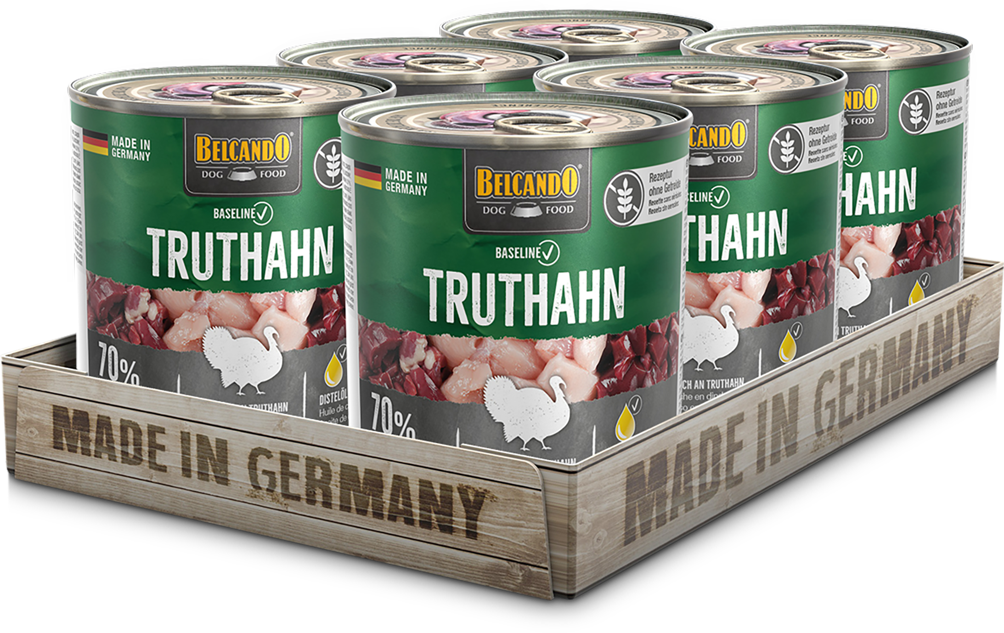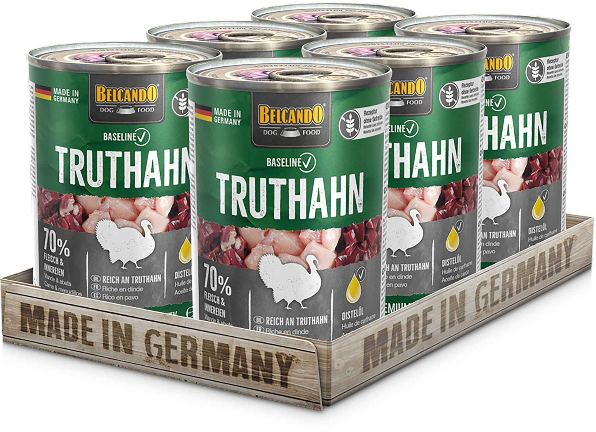 Zusammensetzung: Truthahnfleisch, -leber, -herz, -muskelmagen (26 %); Fleischbrühe (28,8 %); Fleisch; Leber; Magen; Herz; Niere; Lunge; Eierschalen, getrocknet; Mineralstoffe; Distelöl (0,2 %)Analyse: Protein 11 %; Fettgehalt 5,5 %; Rohasche 2,2 %; Rohfaser 0,3 %; Feuchtigkeit 79 %Zusatzstoffe je Kg: Ernährungsphysiologische Zusatzstoffe: Vitamin D3 200 I.E.; Vitamin E (als all rac-alpha-Tocopherylacetat) 50 mg; Mangan (als Mangan(II)-sulfat, Monohydrat) 2 mg; Zink (als Zinksulfat-Monohydrat) 20 mg; Jod (als Kalziumjodat, wasserfrei) 0,2 mgFütterungsempfehlung: Durchschnittswerte für die Fütterung von ausgewachsenen, normal aktiven Hunden finden Sie auf der Verpackung bzw. im Prospekt aufgeführt. Frisches Trinkwasser sollte immer zur freien Verfügung stehen. Nach dem Öffnen max. 24 Stunden im Kühlschrank aufbewahren.Artikel: 512415 -